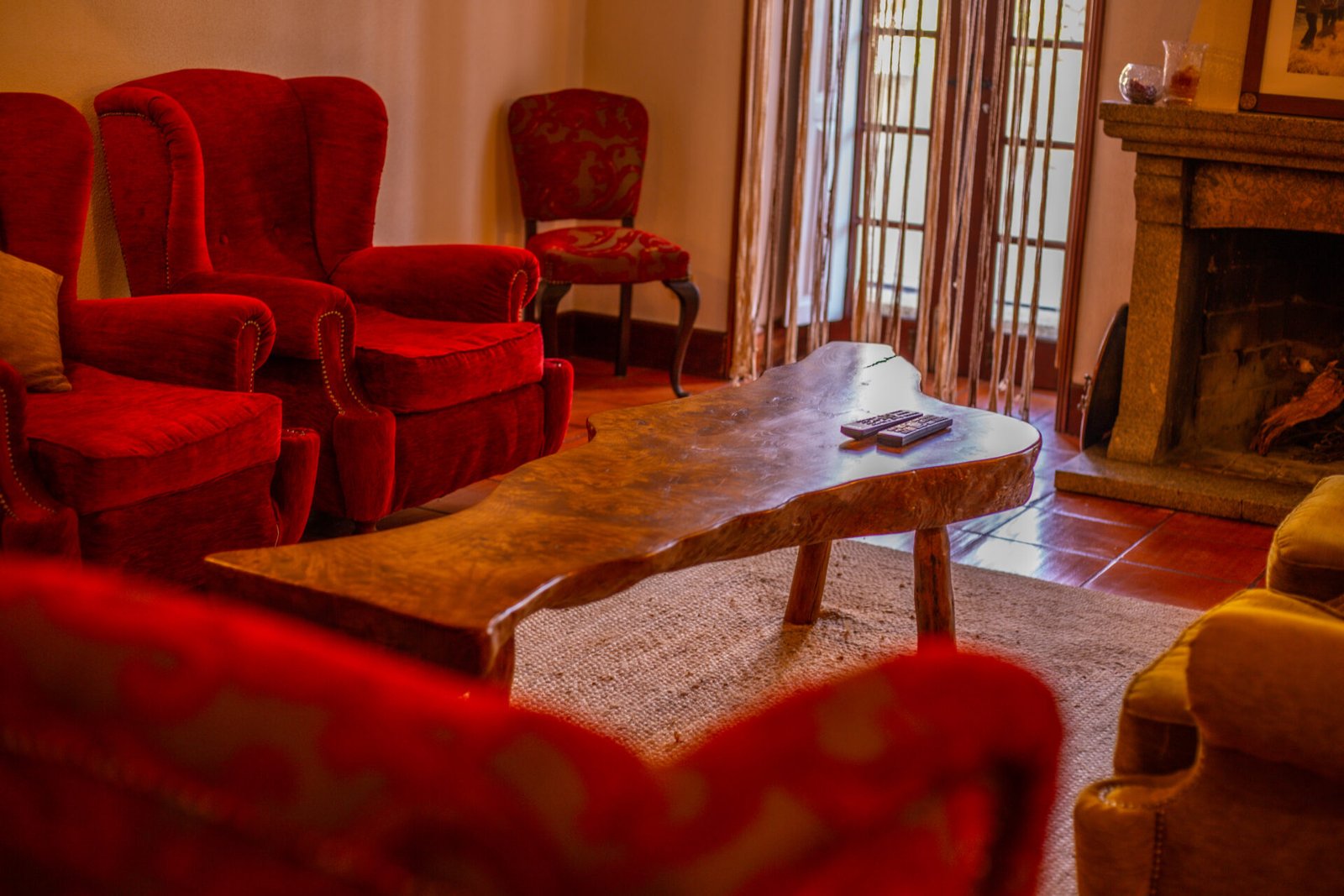 No piso 1, acessível apenas por escadas, encontram-se quatro quartos e uma sala também com lareira.